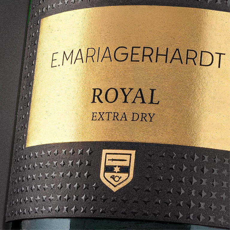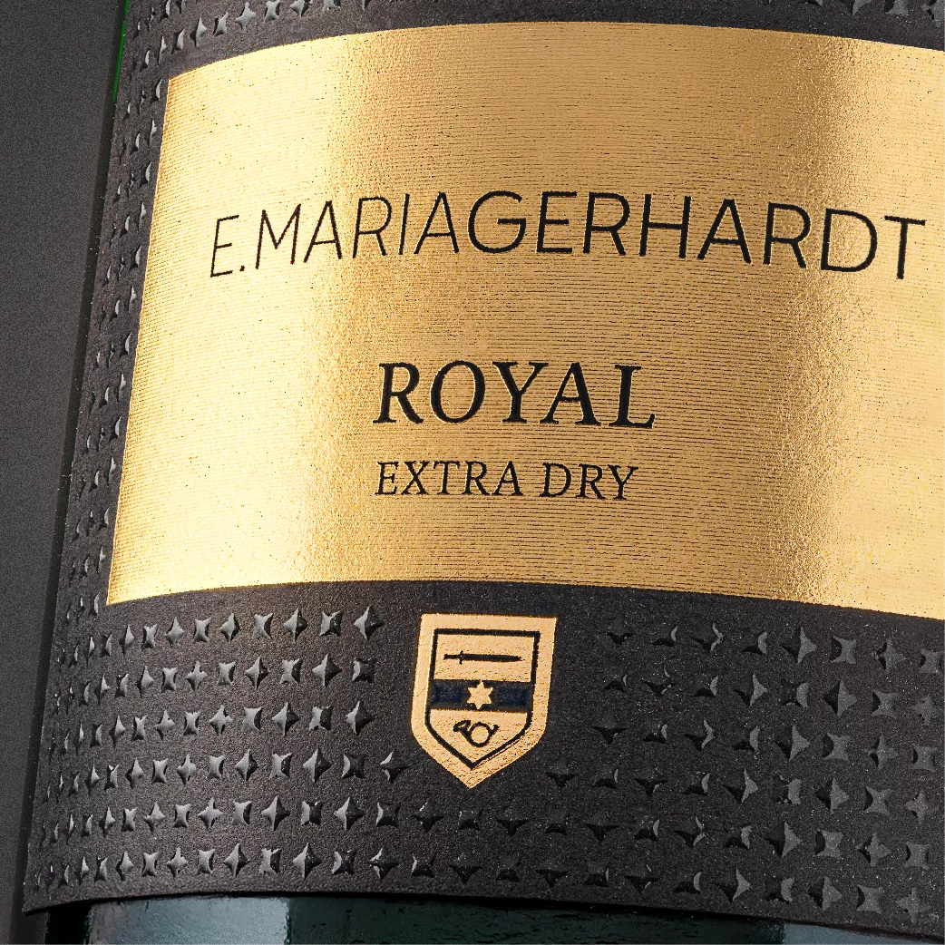Schwarz, Gold und eine raffinierte Struktur: Für unseren Kunden E. Maria Gerhardt haben wir ein Etikett geschaffen, das Eleganz und Präzision vereint.